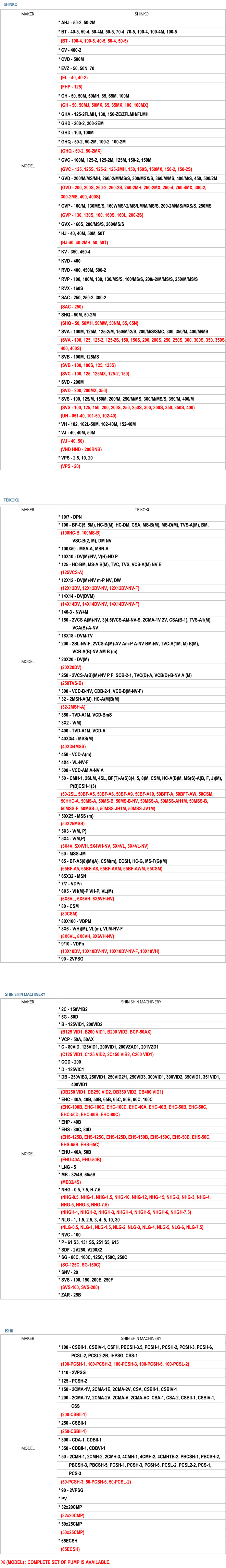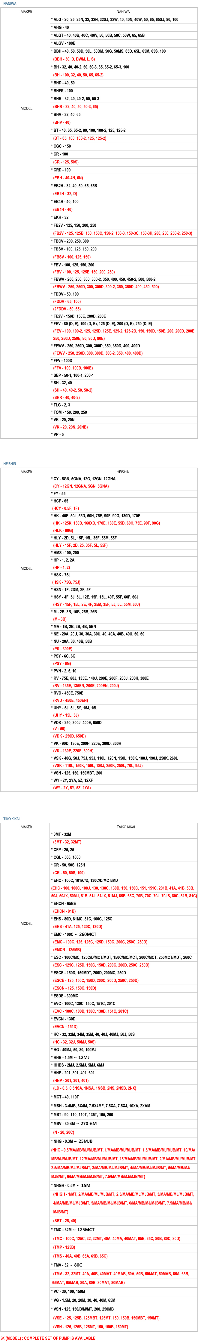 * (MODEL) : COMPLETE SET OF PUMP IS AVAILABLE.